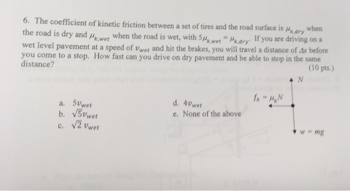 Coefficient of static friction tires on asphalt. The usual estimate for dry asphalt is about 0 8. The coefficient of static friction typically denoted as μ s is usually higher than the coefficient of kinetic friction. On dry surfaces you might get as high as 0 9 as a coefficient of friction but driving them on wet roads would be dangerous since the wet road coefficient might be as low as 0 1. F f frictional force n lb.
